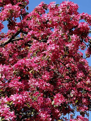 The colour of these plum blossoms can be seen from far, glowing in the sun like blood... Btw - I have given up entirely to try to classify those blossoms - there are so many varieties and I cannot find detailed information of how to seperate them from one another.